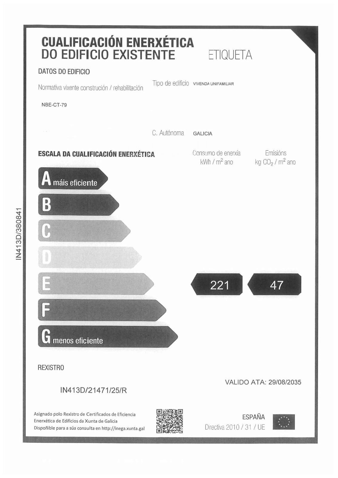 Su certificado de eficiencia energética es el siguiente CEE: E (221-47 ). Llámenos para verla sin compromiso al teléfono 986-66.18.18. Inmobiliaria Marpi.