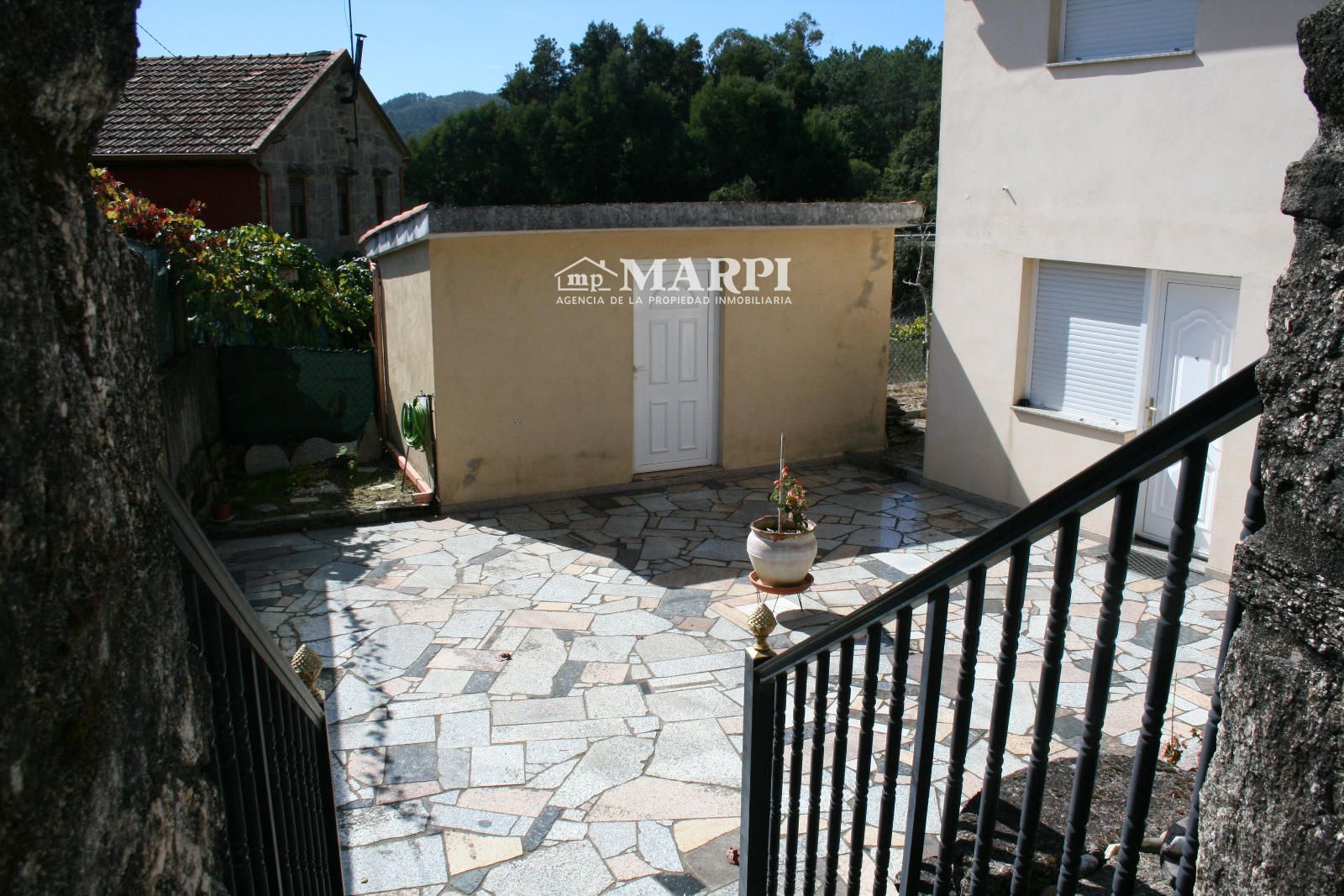 Propiedad ubicada en la parroquia de Gulans, barrio de Eidovello, a 3 kms. de la N-120, a 4 kms. del enlace de Moreira a la A-52 y a unos 6 Kms. del casco urbano de Ponteareas. La pista asfaltada finaliza en la vivienda. Finca de 174 metros cuadrados, totalmente cerrada en la que se encuentra una vivienda compuesta de planta baja, distribuida en cocina salón, un amplio dormitorio y un baño y una planta alta, distribuida en tres dormitorios y un baño. Dos habitaciones con armarios empotrados . Se encuentra totalmente amueblada, solo retiran pertenencias personales, algún cuadro y dos muebles.